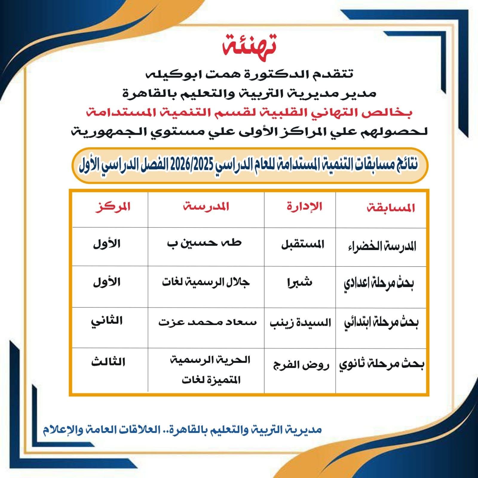 "بخالص التهاني القلبية والتقدير" لقسم التنمية المستدامة، لما بذلوه من جهود متميزة وعمل دؤوب أثمر…