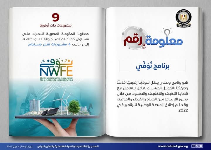 13 مشروعًا يشملها البرنامج الوطني "نُوَفِّي" للتعامل مع قضايا التكيف والتخفيف والصمود #وزارة_التخطيط_والتنمية_الاقتصادية_والتعاون_الدولي #المركز_الإعلامي_لمجلس_الوزراء #رئاسة_مجلس_الوزراء