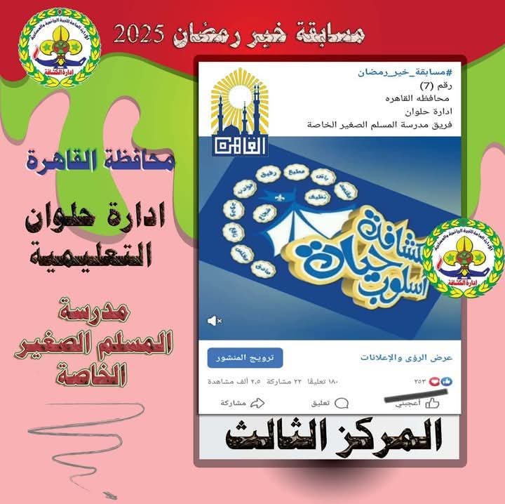 . 🌹الف الف الف مبروووك 🌹 . 🌙(مسابقة خير رمضان)🌙 تحت رعاية الدكتور / عبدالعزيز فهمى مدير عام إدارة حلوان التعليمية والأستاذة / عبير الجلفى القائم بأعمال وكيل الإدارة 🌿الإدارة…