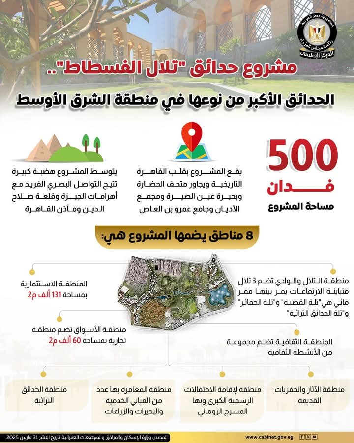 مشروع حدائق "تلال الفسطاط".. الحدائق الأكبر من نوعها في منطقة الشرق الأوسط #وزارة_الإسكان_والمرافق_والمجتمعات_العمرانية #المركز_الإعلامي_لمجلس_الوزراء #رئاسة_مجلس_الوزراء