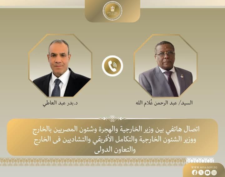 أجرى د. بدر عبد العاطي وزير الخارجية والهجرة، اتصالاً هاتفيًا يوم الخميس ٩ يناير ٢٠٢٥ مع السيد "عبد الرحمن غُلام الله" وزير الشئون الخارجية والتكامل الإفريقي والتشاديين في الخارج والتعاون…