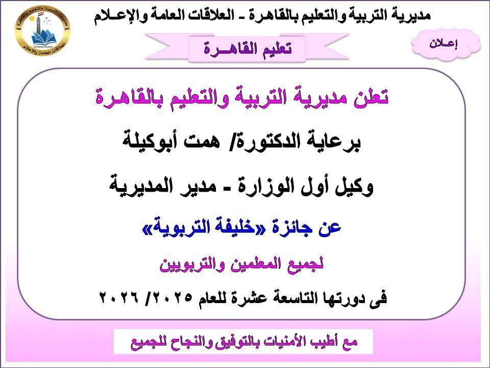 مشاركة المعلمين في هذه الجائزة ليست مجرد فرصة فردية، ولكن هي تأكيد على مكانة التعليم ، وإسهام في رفع راية الإبداع التربوي على الساحة المحلية والدولية. //ــــــــــــــــــــ//ــــــــــــــــــــ// تعلن مديرية التربية…