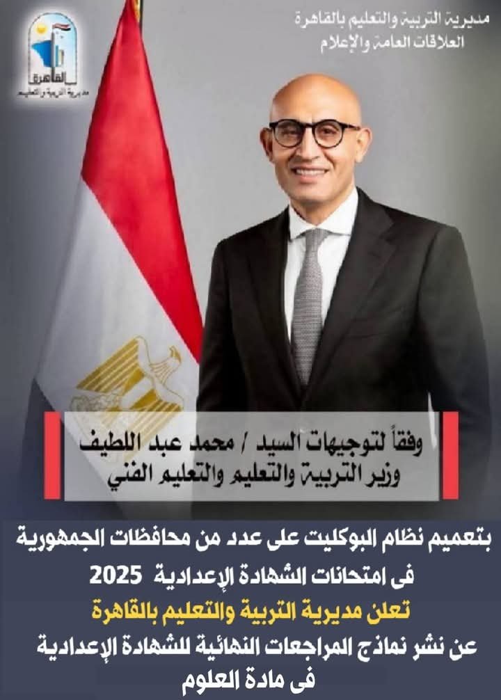 وفقاً لتوجيهات السيد/ محمد عبد اللطيف وزير التربية والتعليم والتعليم الفنى بتعميم نظام البوكليت على عدد من محافظات الجمهورية فى امتحانات الشهادة الإعدادية للفصل الدراسي الثاني للعام الدراسي ٢٠٢٥/٢٠٢٤ تواصل…