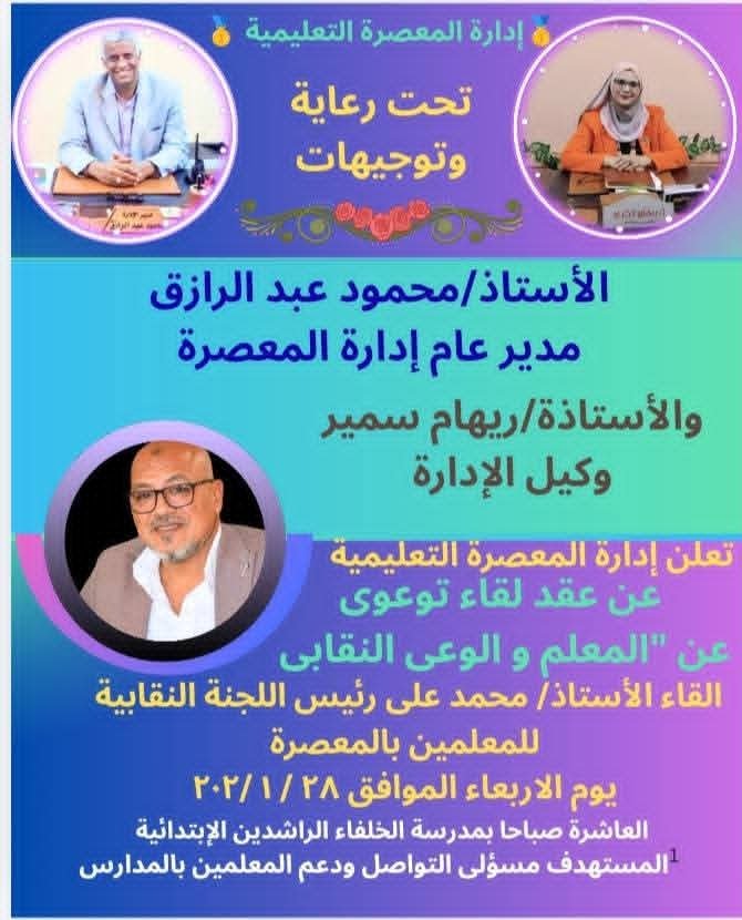 🔴 ادارة المعصرة التعليمية 🔴 ♦️منارة الابداع والتغيير♦️ تحت رعاية استاذ /محمود عبد الرازق مديرادارة…