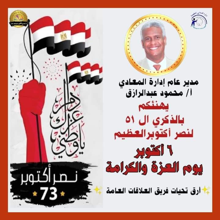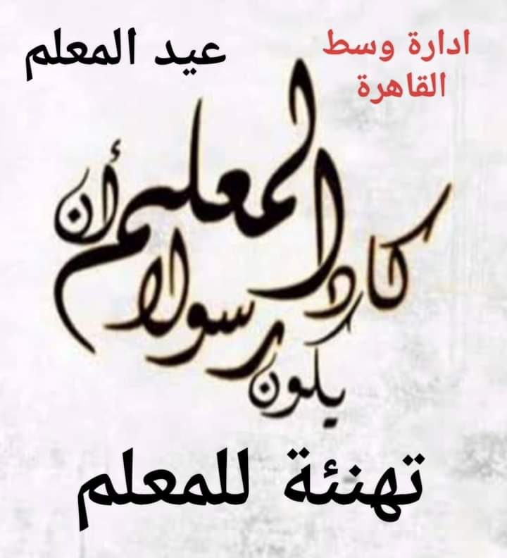 ادارة وسط القاهرة تهنئة للمعلم ✍️ عيد المعلم ✍️ 🌛 المعلم منارة العلم هو الركيزة الأساسية في جميع الأوطان الناجحة، إن أسمى رسالة في الدنيا هي رسالة العلم ونقله وتعليمه للأجيال المتلاحقة حتى تكون أجيال فاعلة 🌜